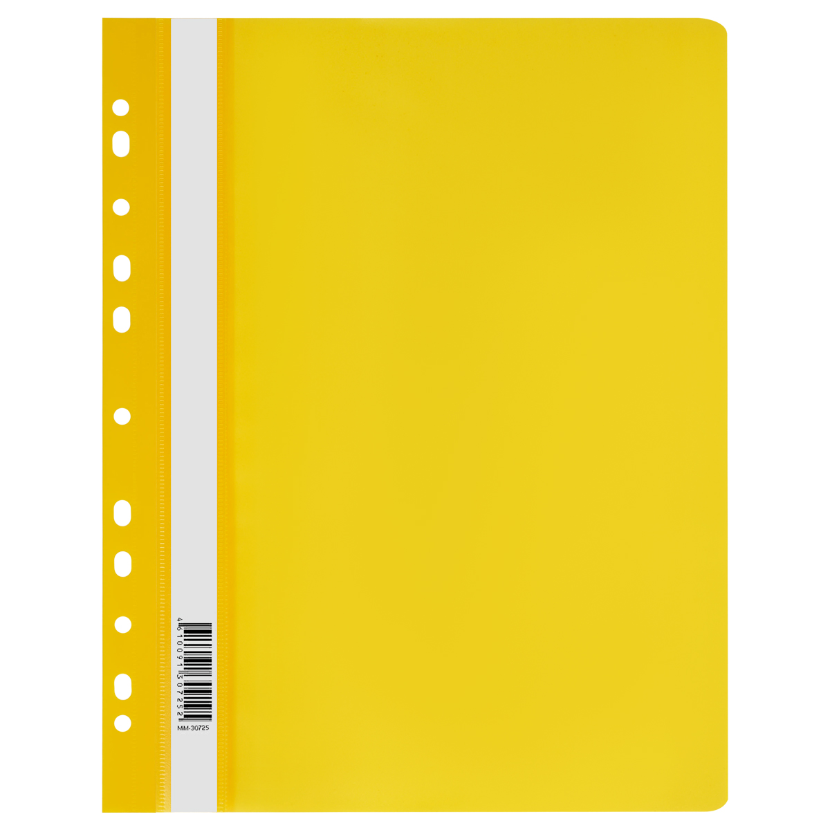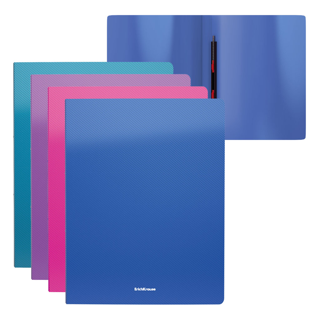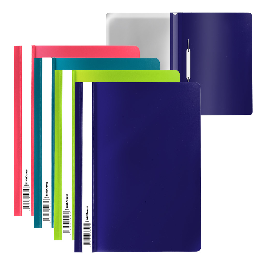 Папка формата A4 из цветного плотного пластика с боковым пружинным скоросшивателем и внутренним карманом. Папка снабжена прозрачным карманом с вкладышем для маркировки. Толщина пластика – 0,7 мм (700 мкм).