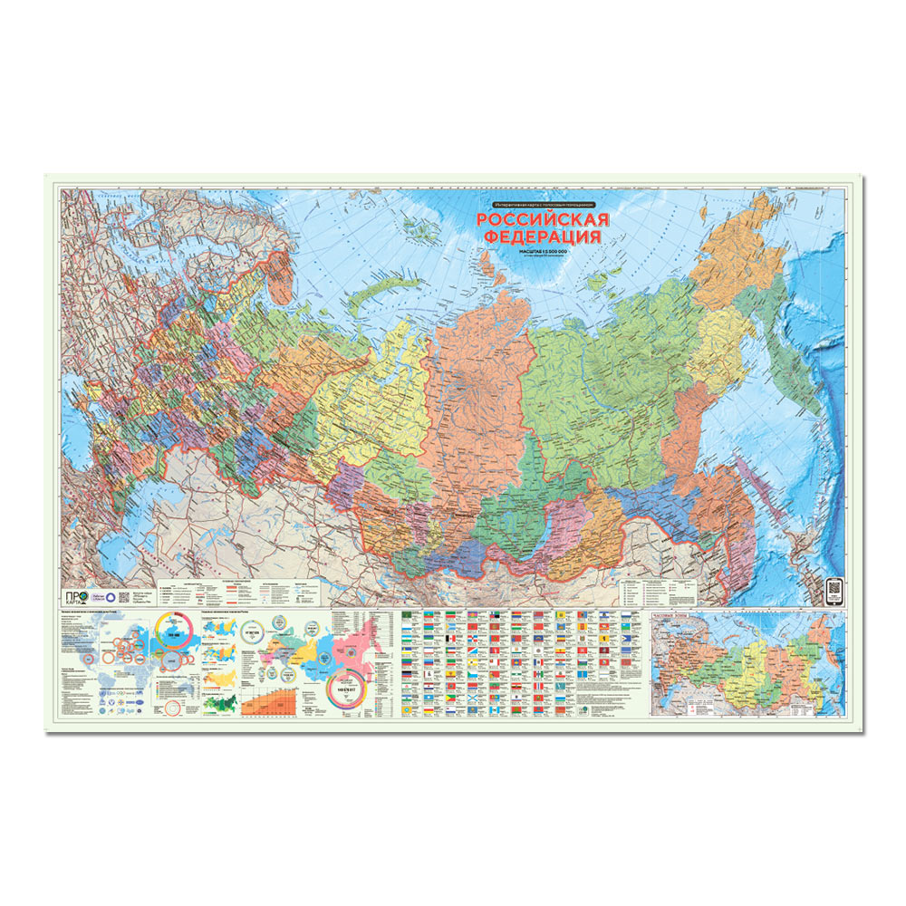карта РФ политико-административная Геодом ПРОкарта 1:5,5 млн. 157 х 107 см 4650348230063
