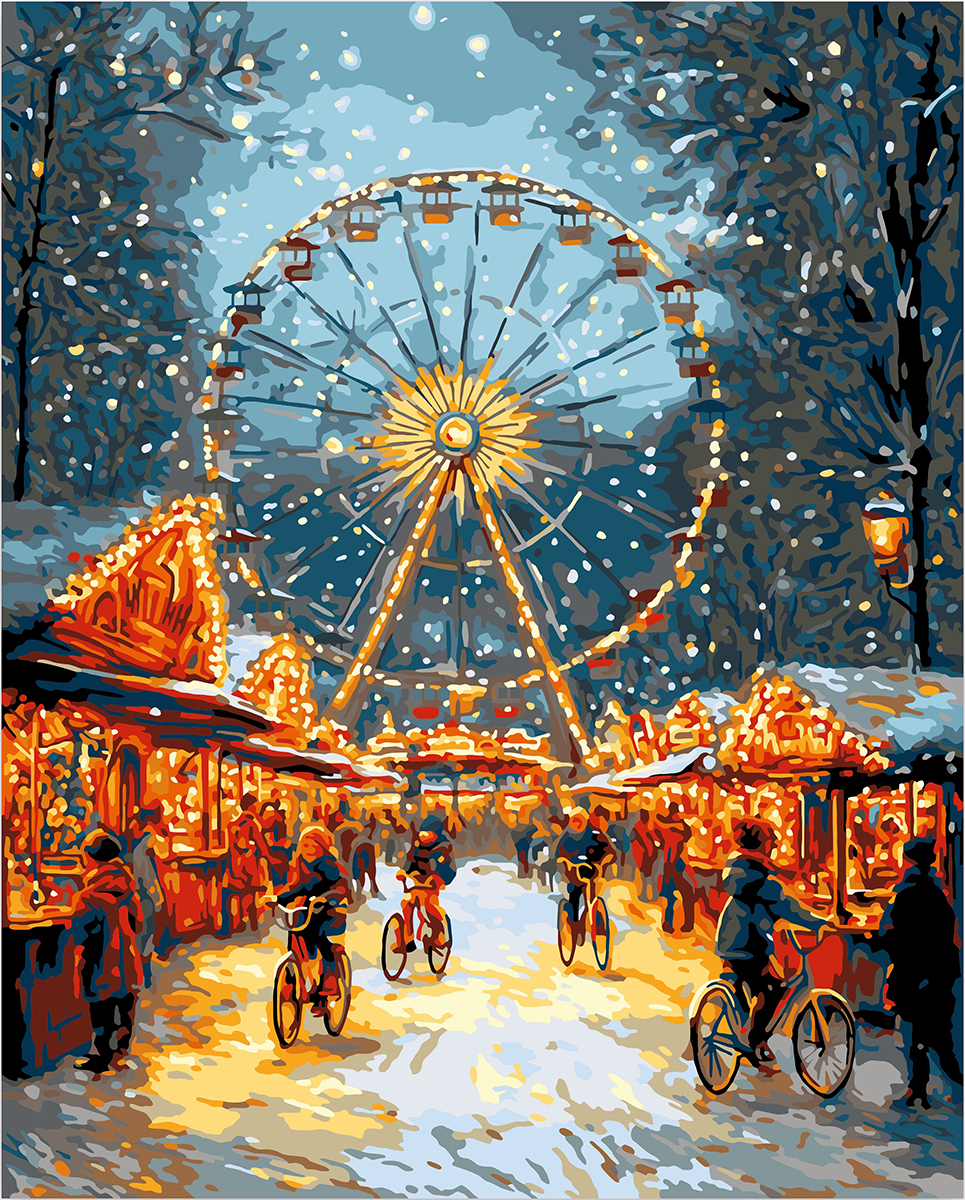 картина по номерам 50 х 40 см Фрея Огни рождественской ярмарки со светодиодами PNB/PLDD-338