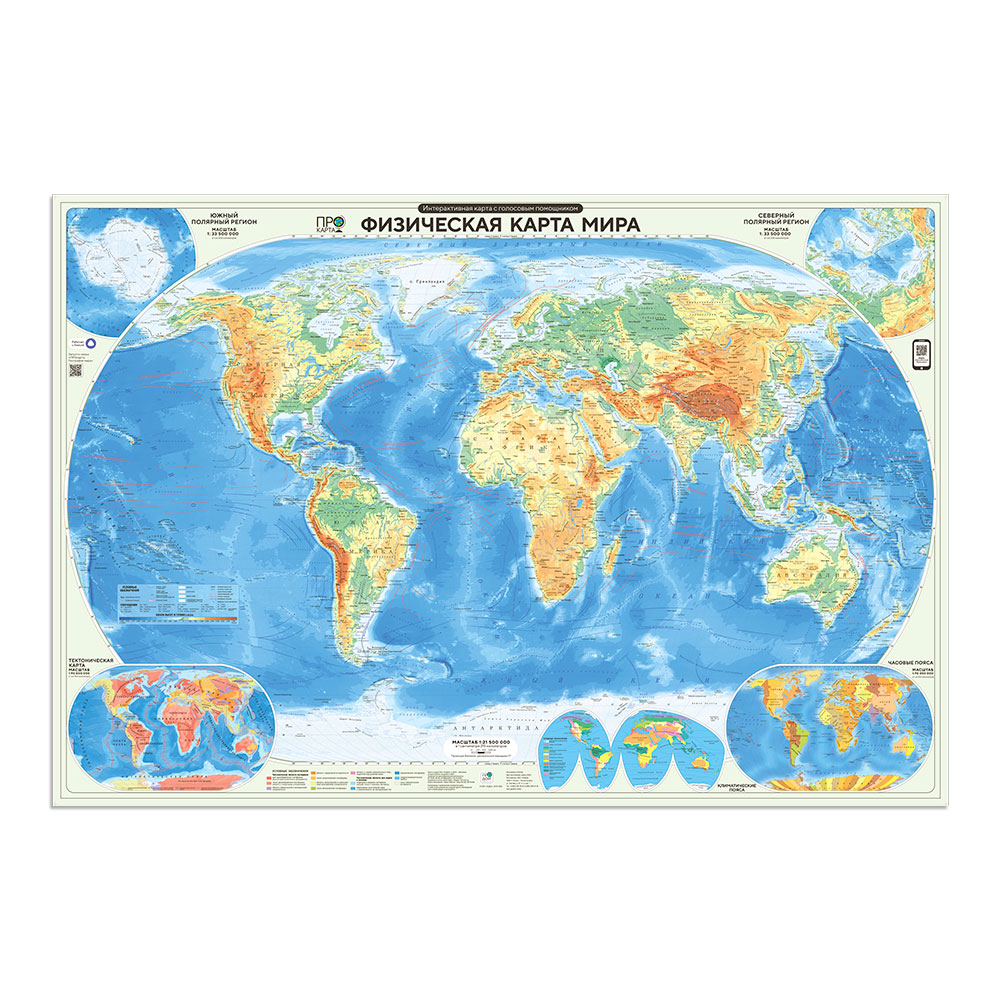 карта Мира физическая Геодом ПРОкарта 1:21,5 млн. 157 х 107 см с ламинацией 4650348231596