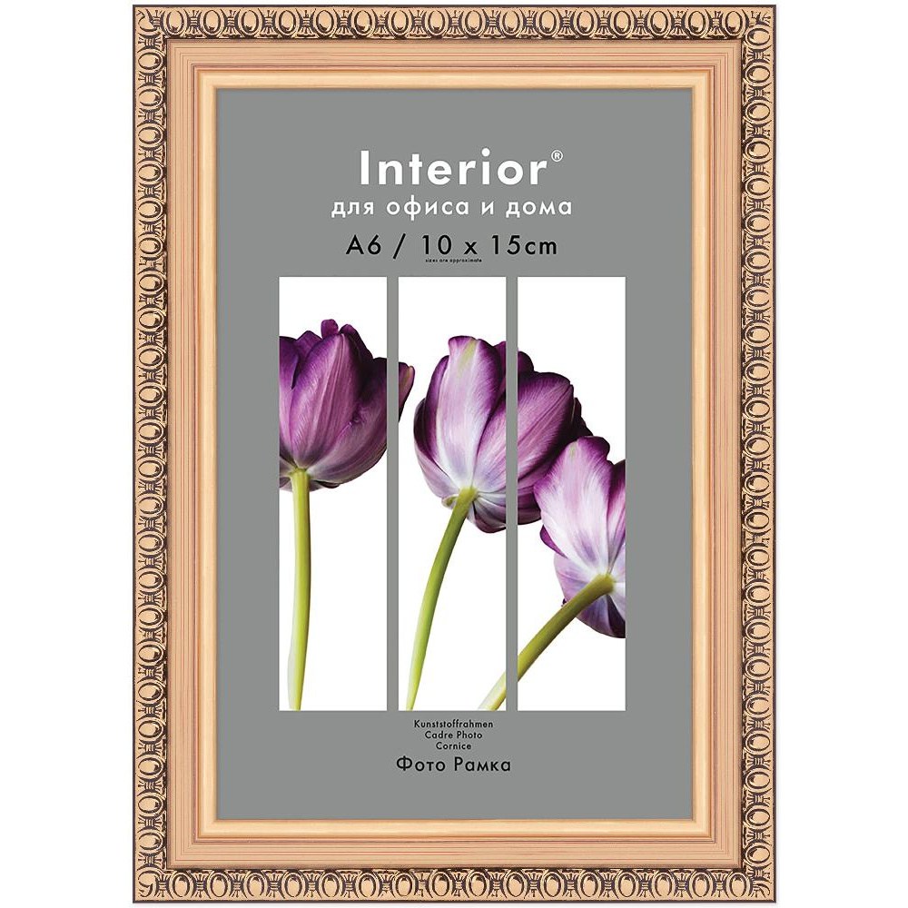 Фоторамка Interior Office 10×15 см (A6), пластик, золото (5-15767) — элегантная рамка для оформления фотографий, открыток и небольших декоративных работ. Классический золотистый оттенок и аккуратные декоративные окантовки придают изделию торжественный и презентабельный вид.